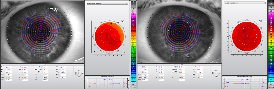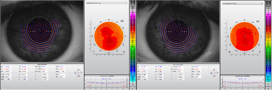 - Anamnese - weiblich (35 Jahre), trägt seit 11 Monaten formstabile Jahreslinsen, tägliche Tragezeit: ca. 10 Stunden, täglich ca. 8 Stunden PC-Arbeit, Sehen in Dämmerung / Nacht: anstrengend, letzter Augenarzttermin vor 6 Monaten keine augenmedizinisch relevanten Vorerkrankungen, sehr zufrieden mit Tragekomfort und Pflegesystem - Versorgungswunsch: neue formstabile Jahreslinsen